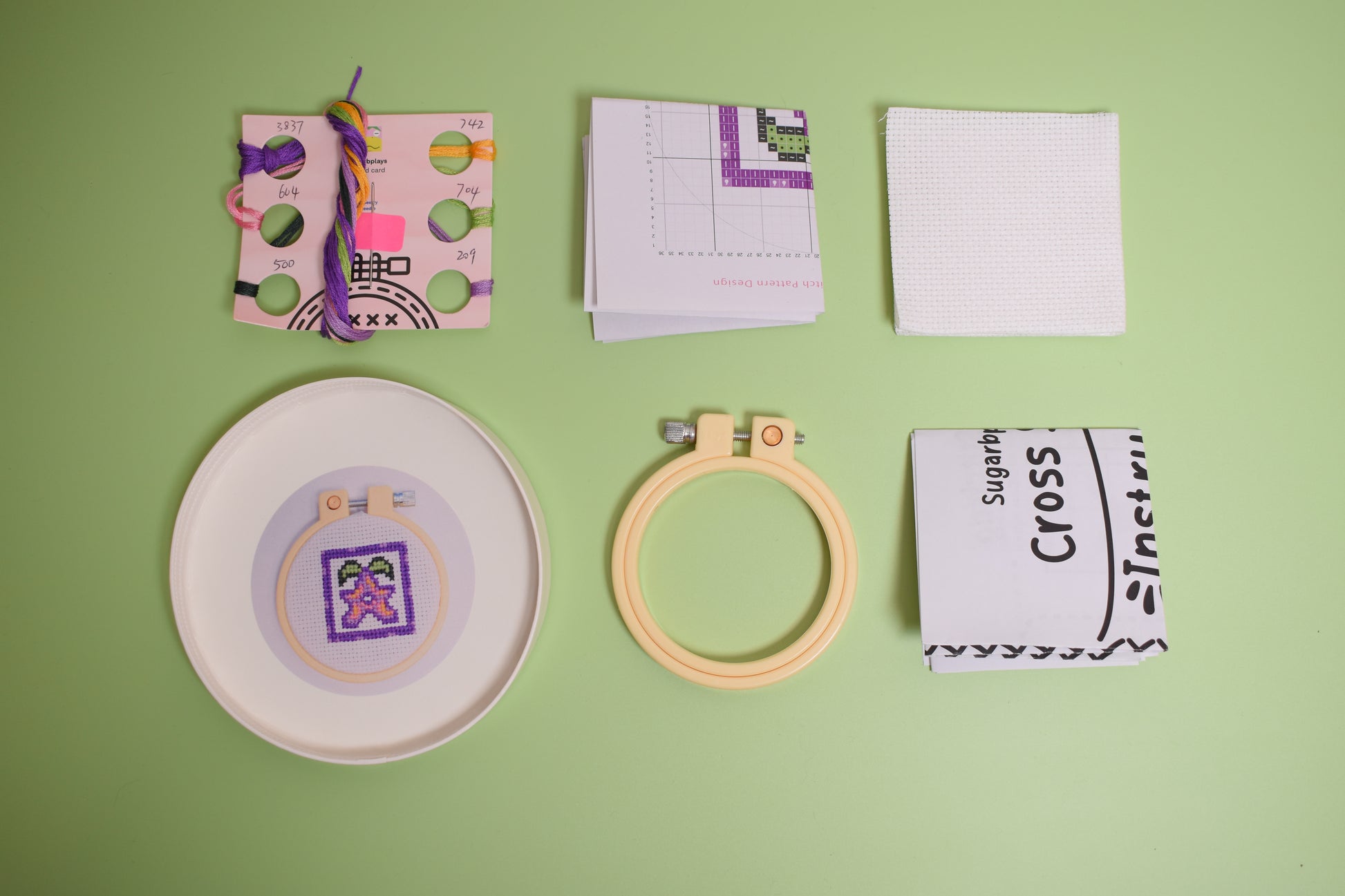 Each cup contains one full cross stitch kit. It comes everything you need except scissors.